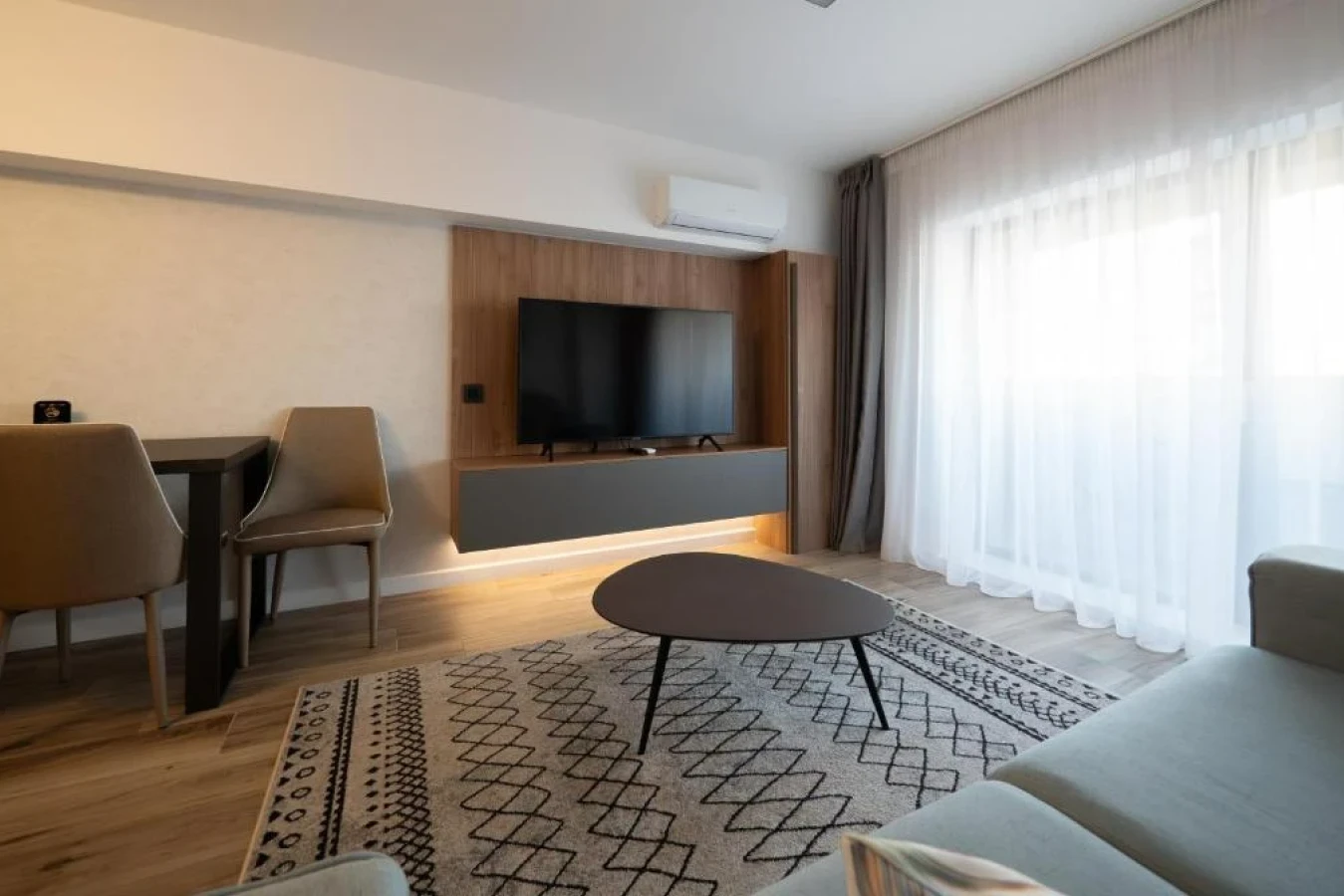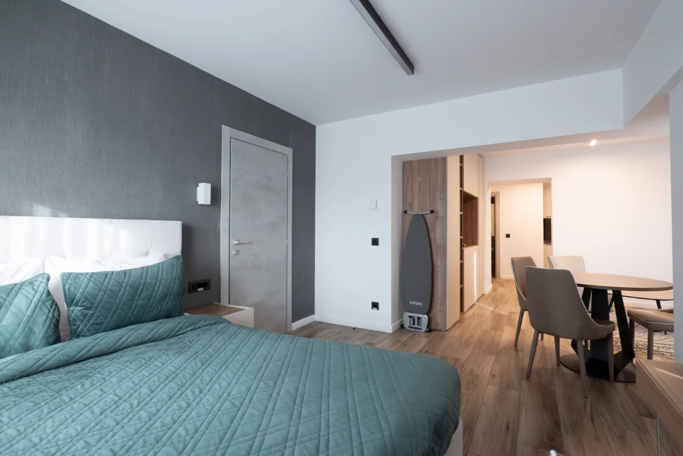 Novos Luxury Suites este un aparthotel premium situat la doar câteva minute de centrul Bucureștiului. Creat pentru călători moderni și pentru cei care apreciază confortul, oferim apartamente spațioase, dotate cu bucătărie complet utilată, terasă sau balcon cu vedere urbană și facilități de relaxare la cele mai înalte standarde.